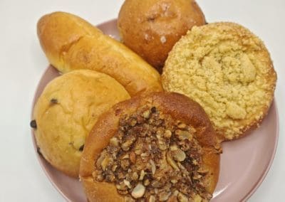 Vous êtes plutôt petit déjeuner sur le pouce, rapidement en coup de vent et dans la voiture ? Retrouvez tous nos croissants, brioches ou autres petites gourmandises, tels que les muffins, madeleines, cookies, que nous vous proposons avec grand plaisir.